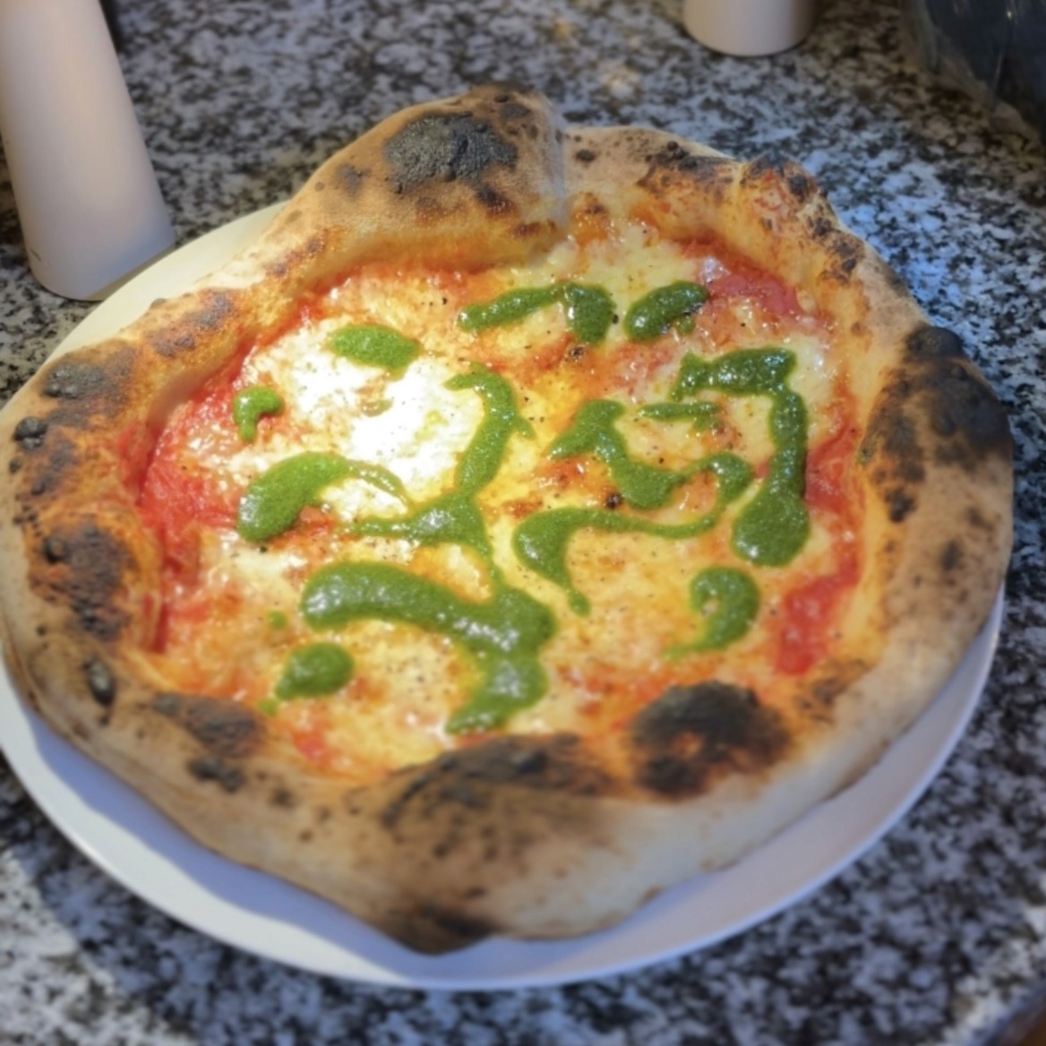 Pomodoro sauce, fresh mozzarella, pesto, Parmesan cheese and olive oil