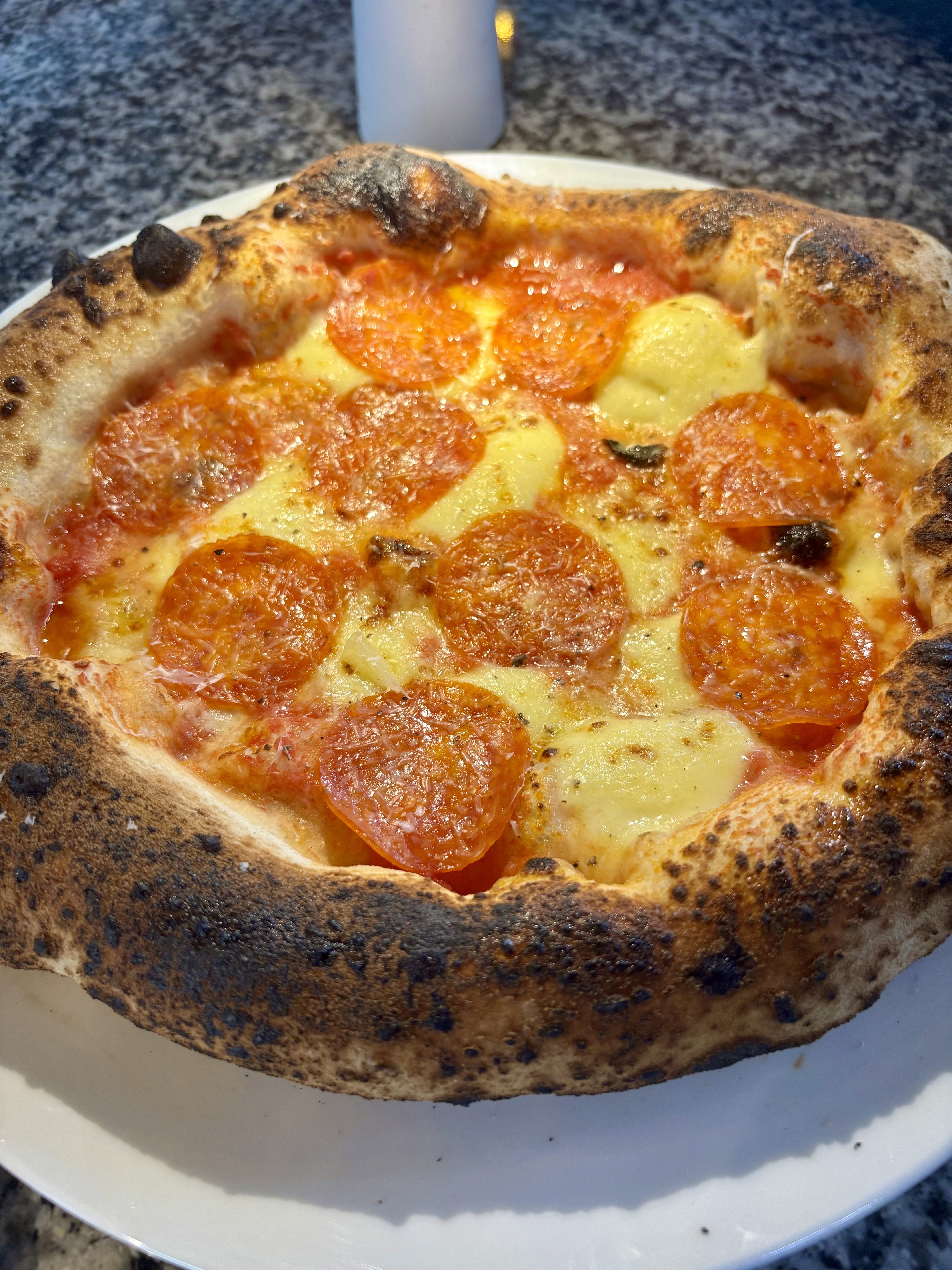 Pomodoro sauce. Mozzarella. Pepperoni. Parmesan and olive oil.